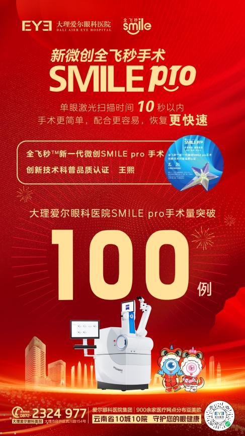 大理爱尔眼科 SMILE pro 全飞秒手术量破百!王熙主任获全飞秒创新技术科普品质认证